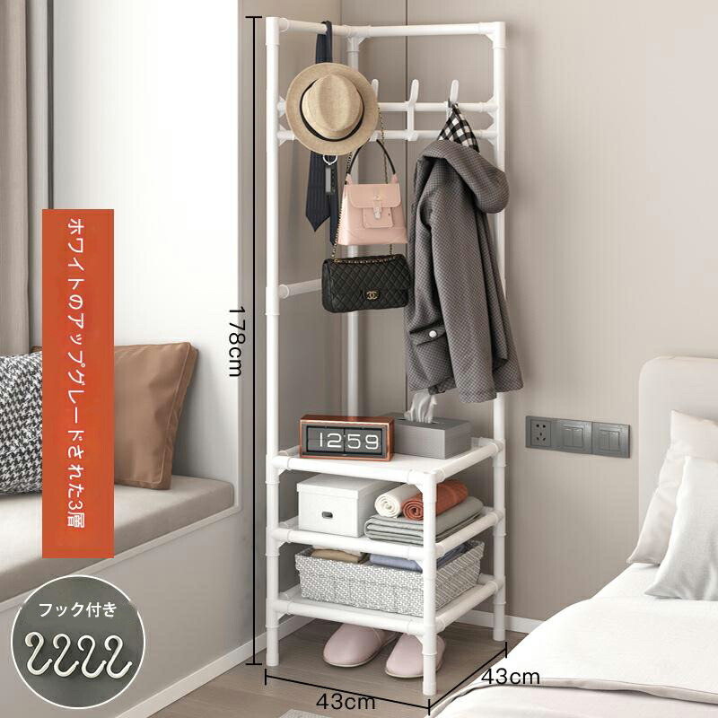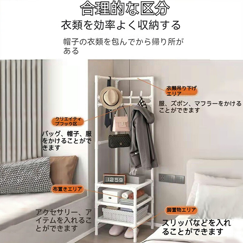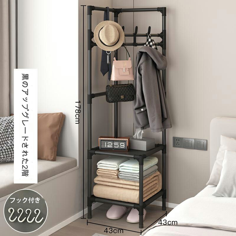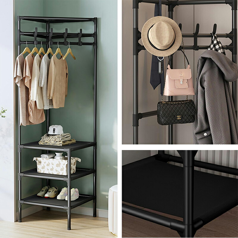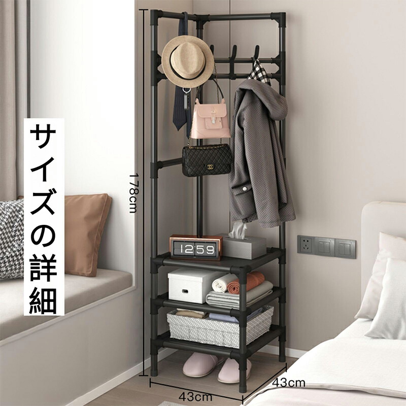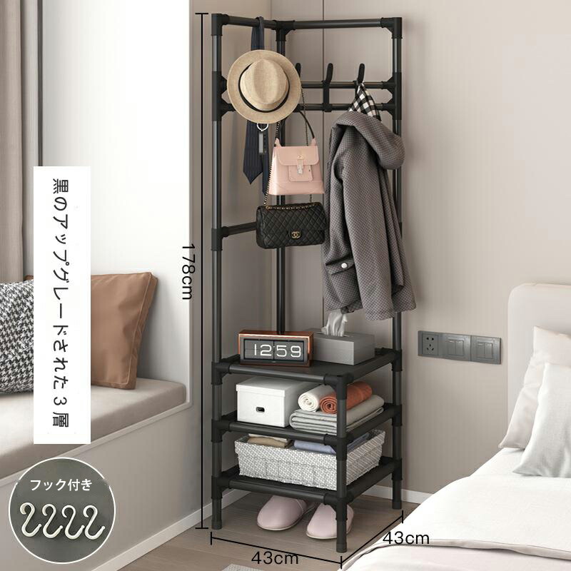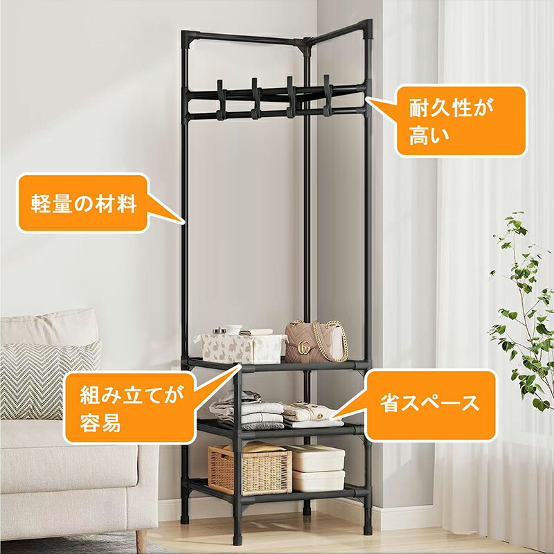 パイプハンガー コートハンガー コーナ ブラック ホワイト 2階 3階