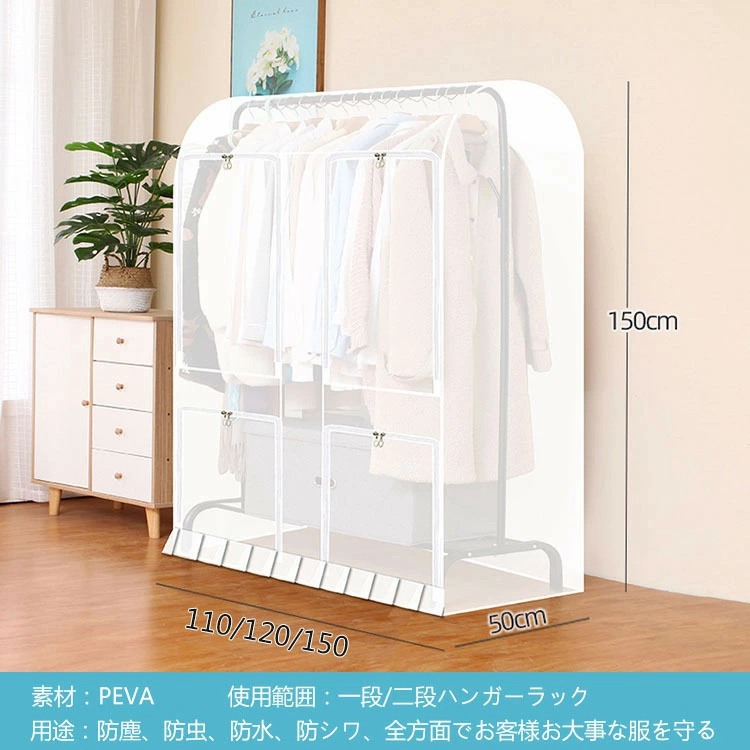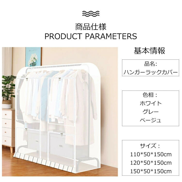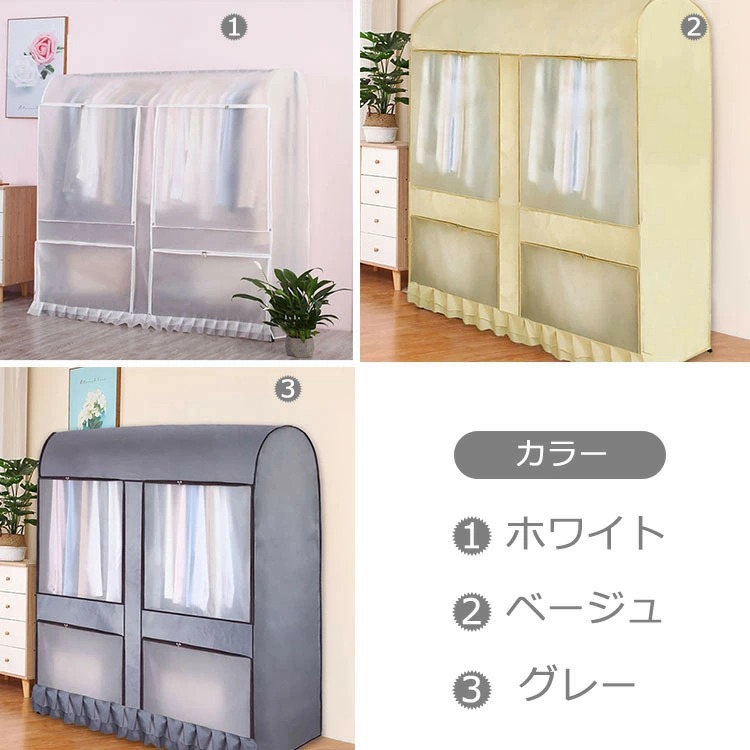 ハンガーラックカバー 防塵カバー ハン ホワイト ベージュ グレー 110*150*50cm 120*50*150cm 150*50*150cm