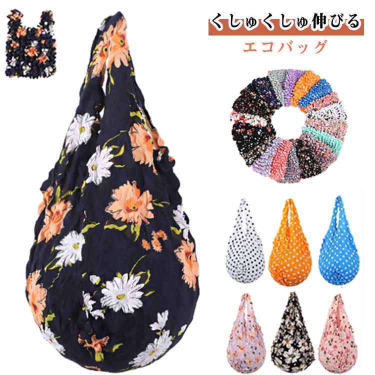 伸縮エコバッグ 花柄 総柄 大容量 折りたたまない 形状記憶 伸びるエコバッグ トートバッグ バックカバー コンパクト 可愛い お弁当 くしゅくしゅ 丈夫 しぼり 買い物バッグ レジ袋 買い物袋 伸縮