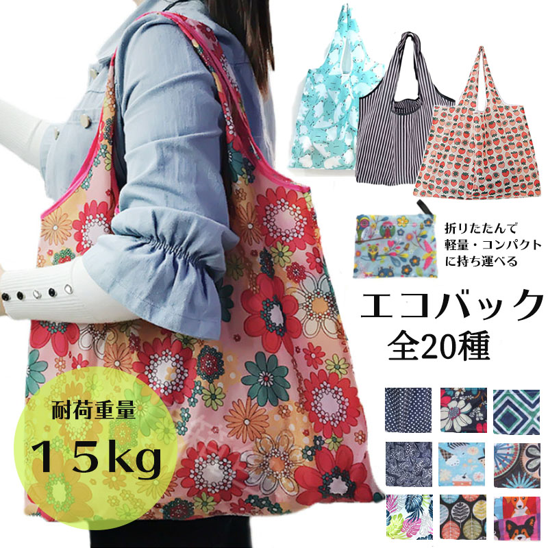 エコバッグ 防水 ショッピング バッグ 撥水 収納バッグ 折りたたみ 小物収納 花柄 かわいい 大容量 丈夫 3枚以上注文 おしゃれ