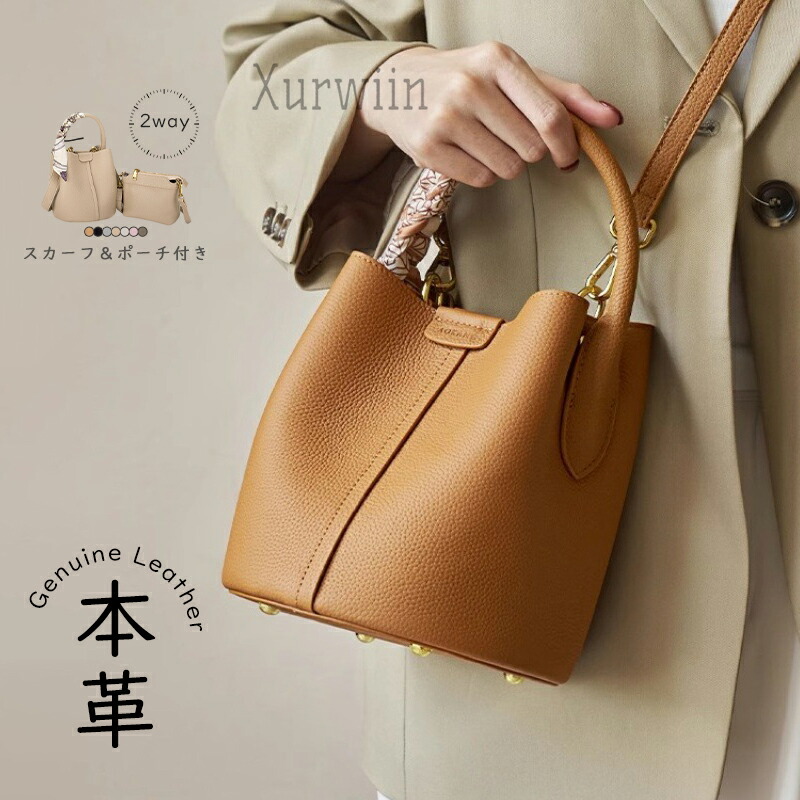 ショルダーバッグ 斜めがけ ハンドバッグ 本革 牛 バケツ バッグ 巾着 ショルダー 2way レディース ポーチ付き 通勤 通学 カジュアル 軽量 軽い フォーマル 本皮 大きめ 小さい 収 大容量