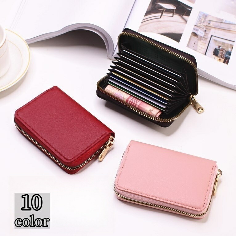 カードケース カード入れ 11枚 コンパクト 大容量 レディース 女性 メンズ 男性 男女兼用 シンプル ラウンドファスナー じゃばら PU お札入れ 単色 無地 IDカード 名刺 ポイ ユニセックス