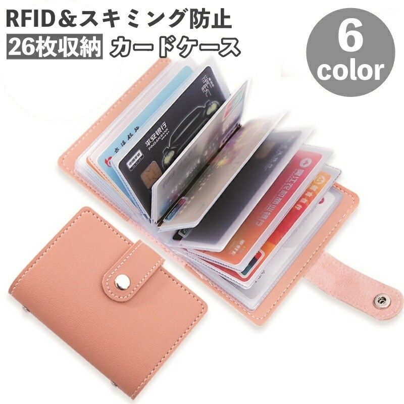 カードケース カード入れ 26枚収納 スキミング防止 RFID磁気防止 パスケース 定期券ケース ユニセックス レディース メンズ 二つ折り ボタン フェイクレザー レザー調 単色 シンプル ク 無地