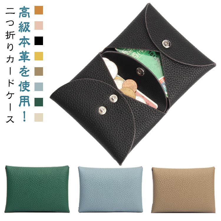 二つ折りカードケース 本革 カードケース 革 小銭入れ レザー ミニ財布 スリム 薄型 大容量 レディース クレジットカード マイナンバーカード カード入れ 診察券入れ 定期ケース パスケ カード収納