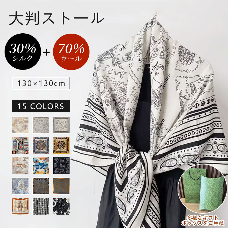 両面プリント&大判サイズ 上質ウール素材 柔らかく肌触りの良いウールとシルクの混紡で、暖かさと軽さを両立。母の日や誕生日、クリスマスなどの贈り物に!