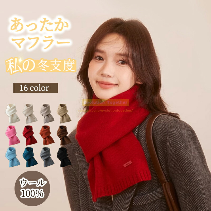 ウール100% ニット マフラー 赤 おしゃれ ミニ 通勤 レディース 冬 大判 シンプル ストール メンズスヌード 無地 ネ 防寒メンズ