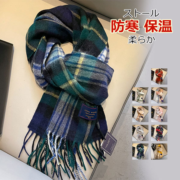 ストール チェック 無地 レディース マフラー 年齢問わず暖かくカシミヤ風の肌触り ウール混とアクリルの2 定番のチェック柄や無地もご用意