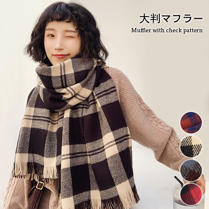 タータンチェック レディース マフラー チェック柄 大判マフラー ストール 大判ストール フリンジ付き 大判 厚手 リバーシブル 両面使える 秋 防寒対策 ファッション小物 冬新作 冬