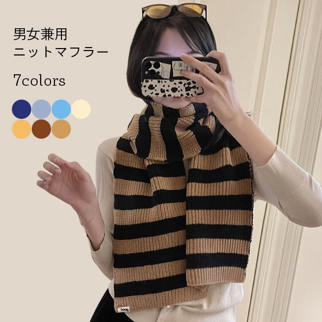 ニットマフラー ボーダー柄 レディース マフラー 厚手 ニット メンズ 冬マフラー 縞柄 通勤 レトロ 暖かい ファッション小物 男女兼用 ボーダー柄マフラー クリスマス プレゼント おしゃれ