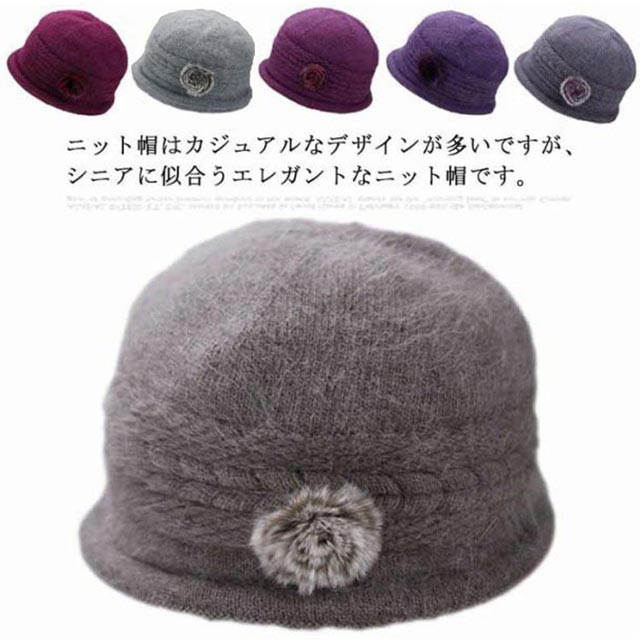 全6色 おばあちゃん ニット帽 レディース 帽子 毛糸帽子 花 70代 80代 秋冬 50代 ニットキャップ ハット 60代 うさぎの毛 婦人 フラワー お年寄り ウール 誕生日 高齢者