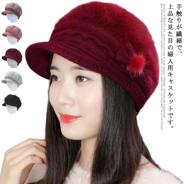 キャスケット レディース ニット帽子 ファー 秋冬 婦人 裏起毛 シニア ふわふわ 上品 厚手 暖かい 防寒 あったか 保温 母の日 40代 50代 60代 70代 プレゼント ギフト 女 祖母