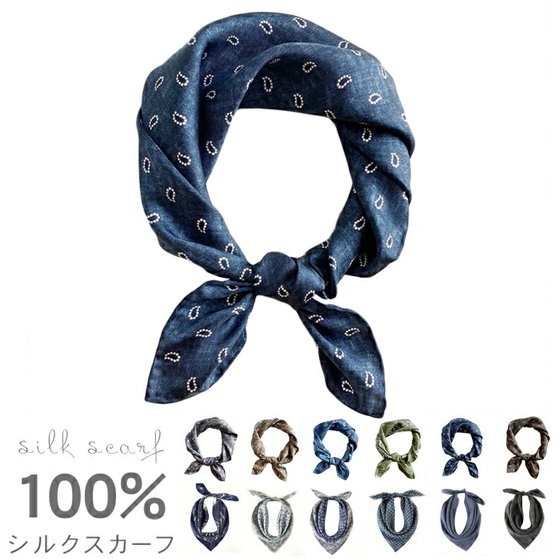 シルク100% スカーフ 正方形 シルクスカーフ メンズ 春 夏 秋 冬 用 絹 シルク 100 % 花柄 53×53cm 夏用ストール uv 接触冷感 首 uvカット冷房対策 花 日焼け対策