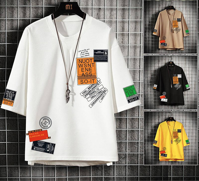 Tシャツ メンズ ビッグ シルエット 半袖 夏服 7分袖 ルーズ ビッグT オーバーサイズ ゆったり 体型カバー 無地 涼しい カジュアル おしゃれ 韓国ファッション 夏 春夏 大きいサ