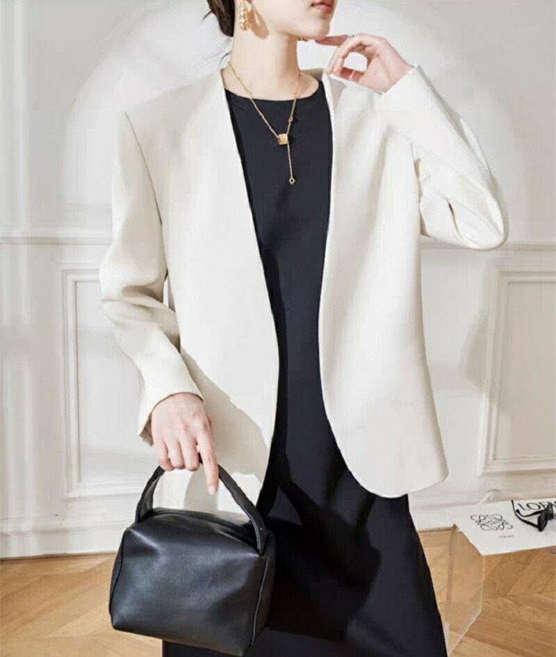 ノーカラー ジャケット シンプル オフィス オケージョン 羽織り 2025年春夏新作 ライトアウター ブラック かわいい