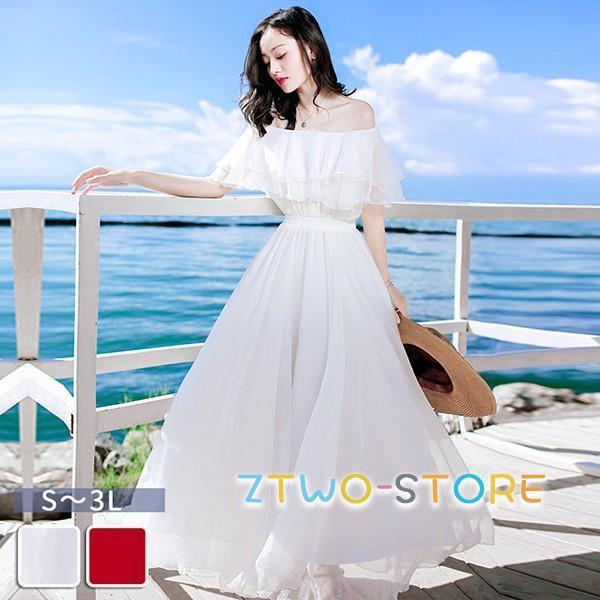 ワンピース オフショルダー マキシ丈 大きいサイズ 上品 夏ワンピース 大人 リゾートワンピース おしゃれ かわいい ハワイ 無地
