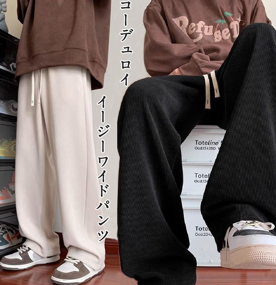コーデュロイ ワイドパンツ 裏起毛 リブ イージーワイトパンツ メンズ ボトムス ズボン パンツ 大きいサイズ ゆったり 体型カバー おしゃれ ウエストゴム ストレート イージーパン スラックスパンツ
