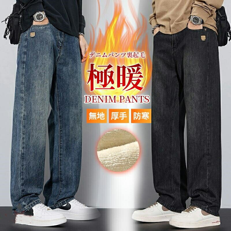 ジーンズ 裏起毛 メンズ デニムパンツ ロングパンツ 裏ボア 秋冬 防寒 暖かい ボトムス カジュア ワイドパンツ リラックスパンツ ストレート