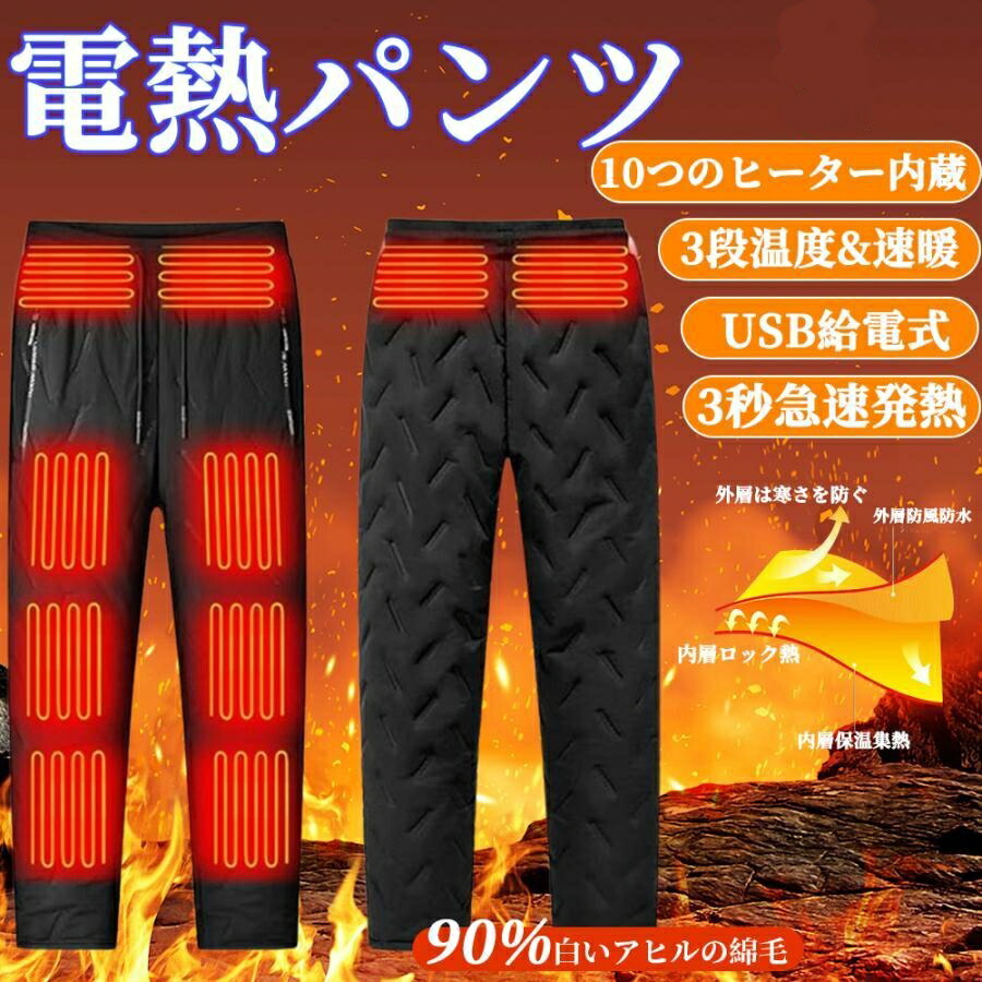 電熱パンツ ヒーターズボン 電熱ズボン ヒーターパンツ 10枚ヒーター付き 男女兼用 ユニセックス 三段階温度調節 断熱保温 撥水生地 USB給電式 防寒 アウトドア 室内 登山 キャンプ 車中 釣り