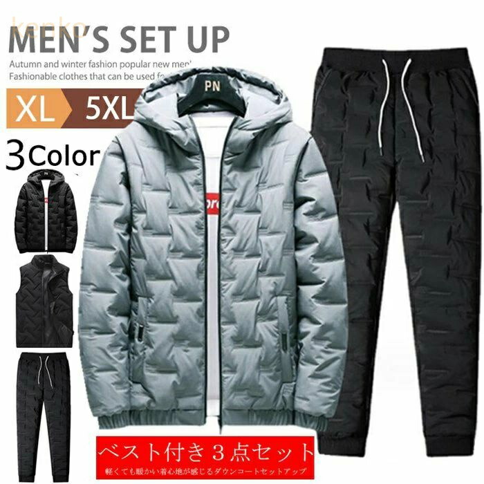 上下セット ダウン綿 セットアップ 軽量 メンズ 3点セット ダウンパンツ ベスト ダウン綿ジャケット 中綿ジャケット