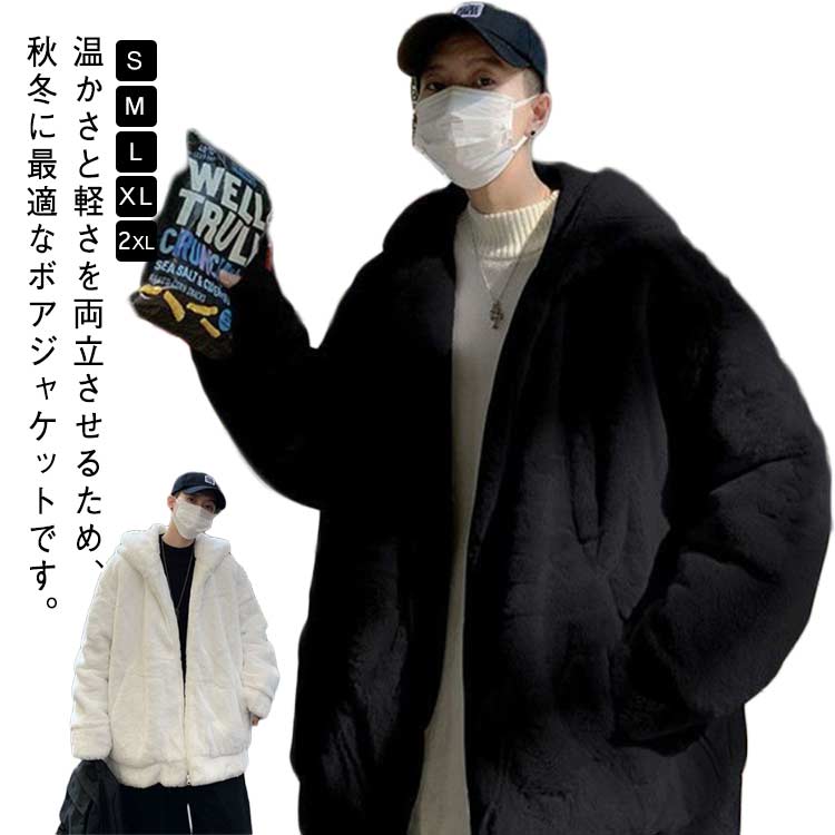 ボアジャケッ 厚手 防寒 裏起毛 暖かい オーバーサイズ ブルゾン モコモコ フード付き ボアコート メンズ カジュアル ジャンパー