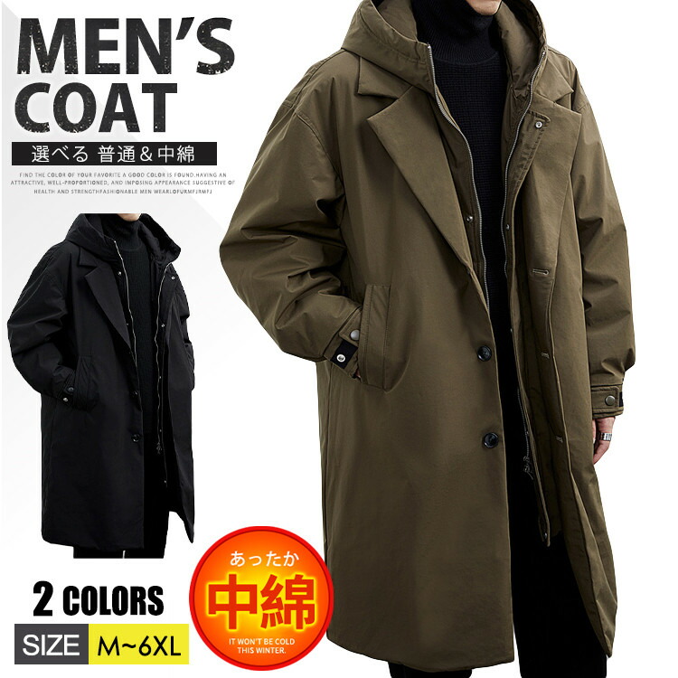 トレンチコート メンズ 綿入り ロングコート ビジネスコート チェスターコート 防寒 コート 厚手コート 大きいサイズ アウター 暖かい 重ね着風 フード付き 秋冬 冬服 薄手 中綿コート 選べ 冬物