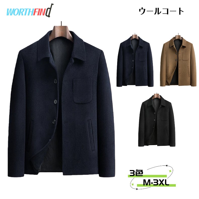 ウールコート 70%ウール チェスターコート ジャケット メンズ 無地 シングルブレスト ハーフコート トレンチコート コート アウター カジュアル 長袖 暖 ビジネス
