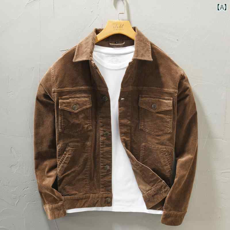 コーデュロイ ジャケット メンズ アウター リネン レトロ ワークウェア 大きいサイズ カジュアル コート 茶 ベージュ トップス