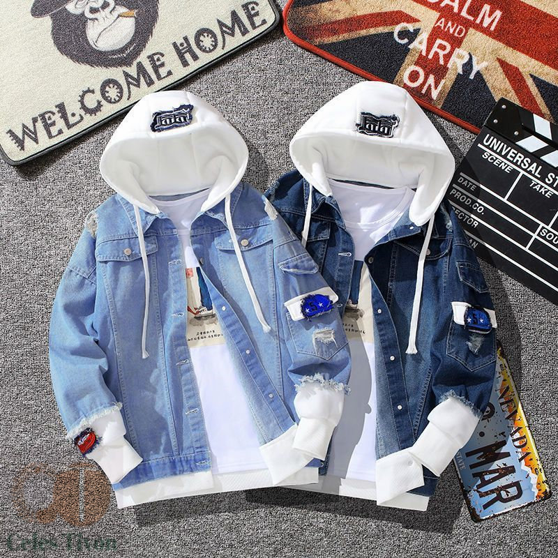 ジャケット メンズ デニムジャケットメンズ 長袖 春秋 カジュアル ブルゾン フード付き パッチワーク無地 おしゃれ 大きいサイズ メンズコートジャケット 野球服 hiphop レトロ カッ ゆったり
