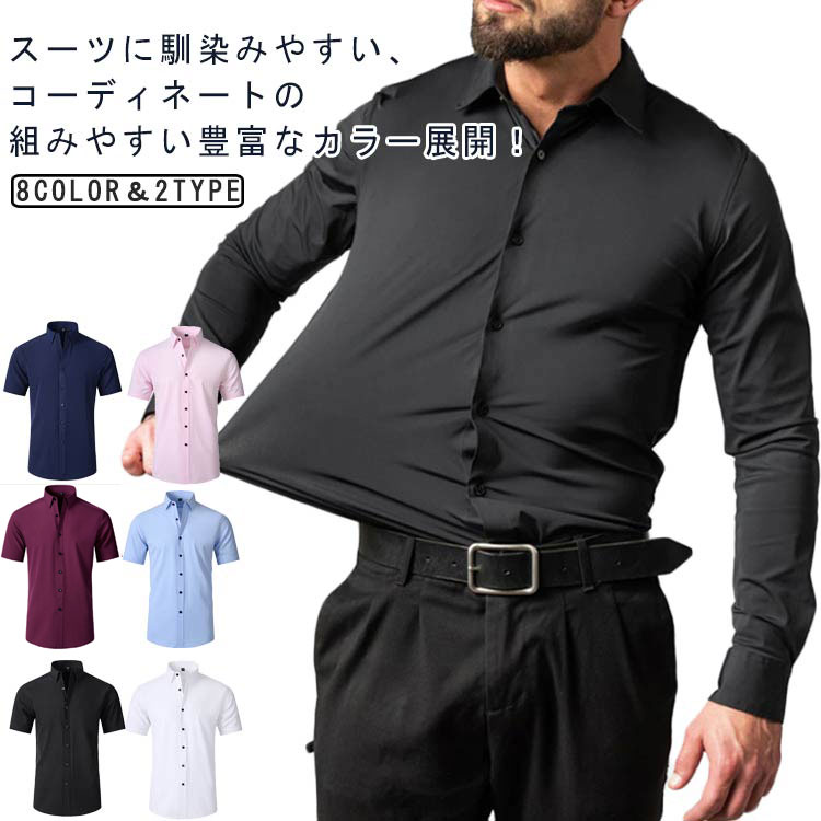 ノンアイロンシャツ ストレッチ ワイシャツ 長袖 フォーマル 伸びる 形態安定 襟付き シャツ yシャツ 半袖 男性 紳士 ビジネス 通勤 オフィス カジュアル カラフル オールシーズン メ きれいめ