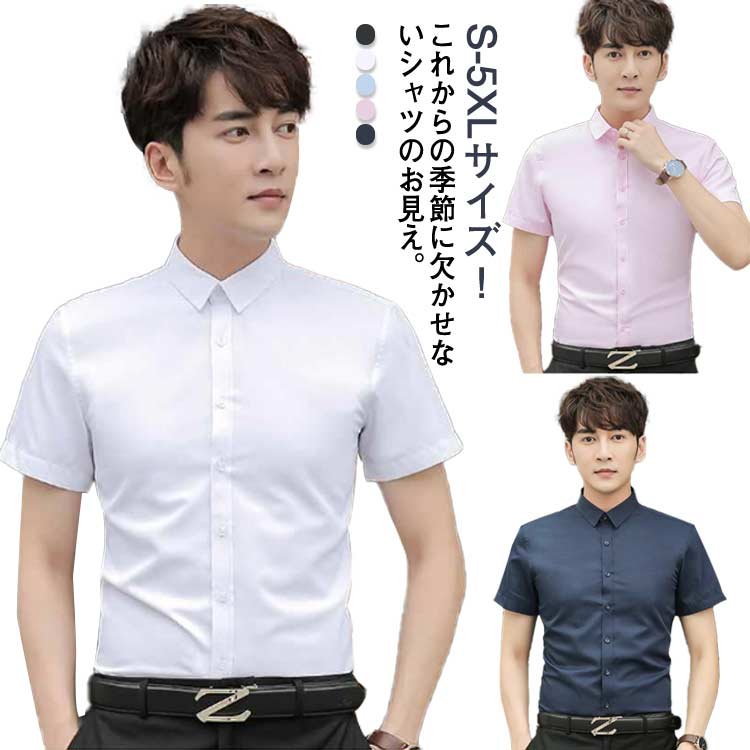 カラーシャツ ワイシャツ 半袖 メンズ 白 ノーアイロン Yシャツ 紺 黒 ビジネスシャツ シャツ 長袖 ドレスシャツ 開襟 カッターシャツ スリム 大きいサイズ 黒シャツ カジュア 細身