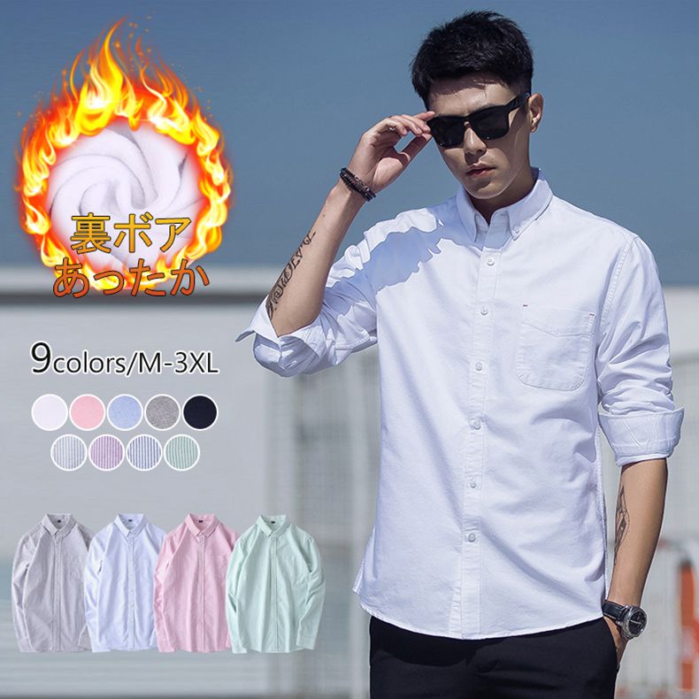 S-5XL ワイシャツ 長袖 シャツ 裏起毛 メンズ 厚手 秋冬 フォーマルシャツ 大きいサイズ 秋服 冬服 防寒 カジュアル 冠婚葬祭 暖かい 50代 Yシャツ ビジネスシャツ 20代 30代 無地