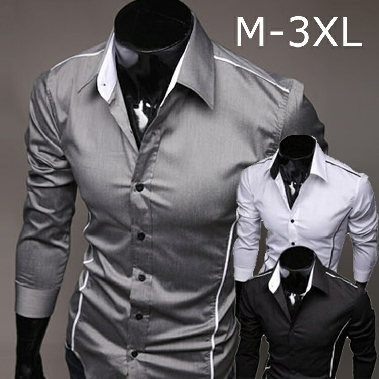 Yシャツ 白シャツ ロング丈 タイト 長袖シャツ ワイシャツ シャツ 長袖 メンズファッション 秋冬 キレイめ カラーシャツ