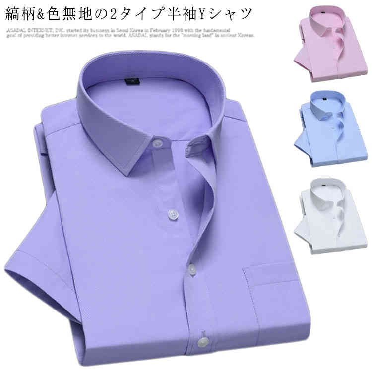 メンズ 半袖シャツ ビジネス ワイシャツ Yシャツ 半袖ワイシャツ ノーアイロン トップス 半袖 夏 無地 カジュアルシャツ 形態安定シャツ 人気 男 新作 キレイ目 縞柄 色無地 2タイプ シンプル