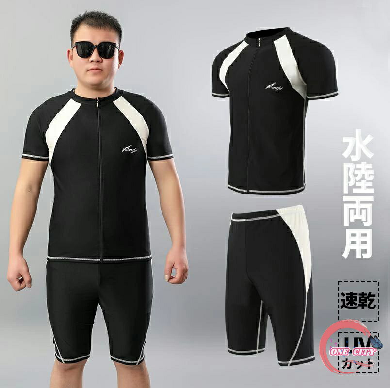 水着 メンズ 上下セット セットアップ パパ 半袖 ラッシュガード ハーフパンツ ブラック スポーツ水着 大量注文にも対応しています