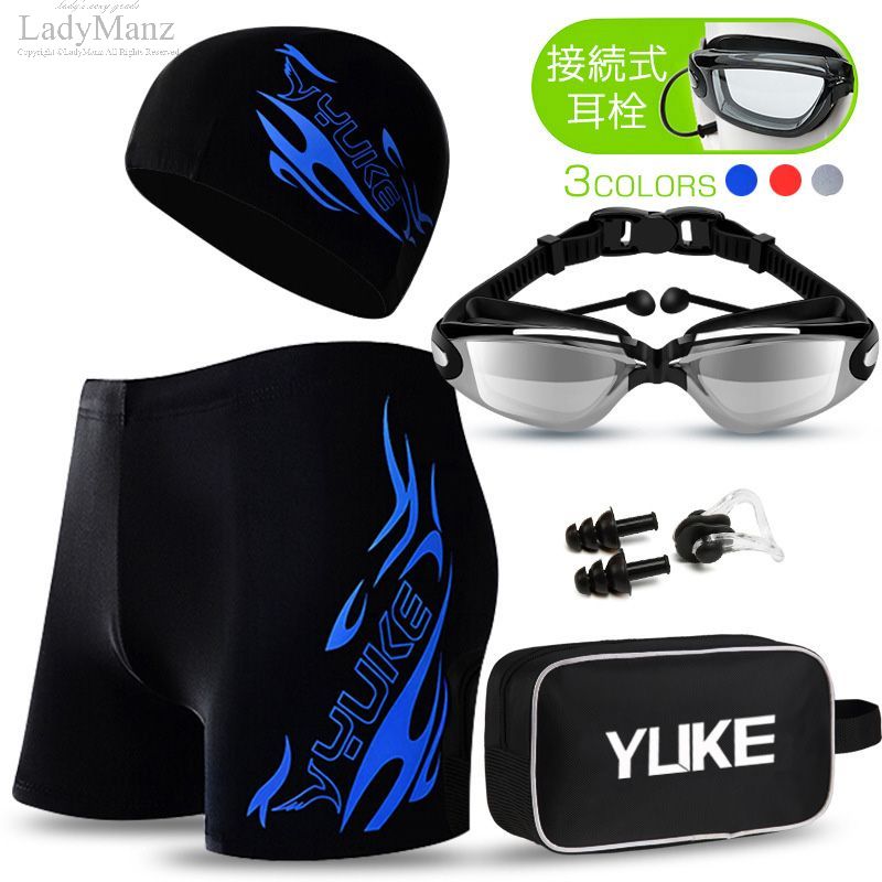 水着 メンズ フィットネス水着 競泳水着 短パン 水泳パンツ 水泳用ゴーグル 練習用 スイムパンツ スイムウェア 速乾 海水パンツ スポーツ スポーツ水着 接続式耳栓 ショットパンツ 男性 帽子セット