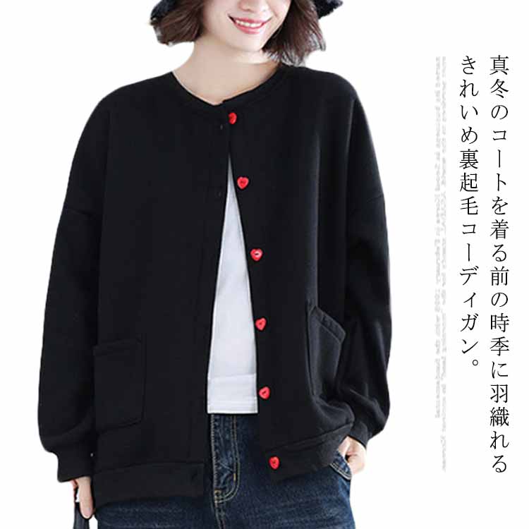 きれいめ裏起毛コーディガン 秋冬 暖かい 長袖 クルーネック アウター コート トップス おうちコーデ