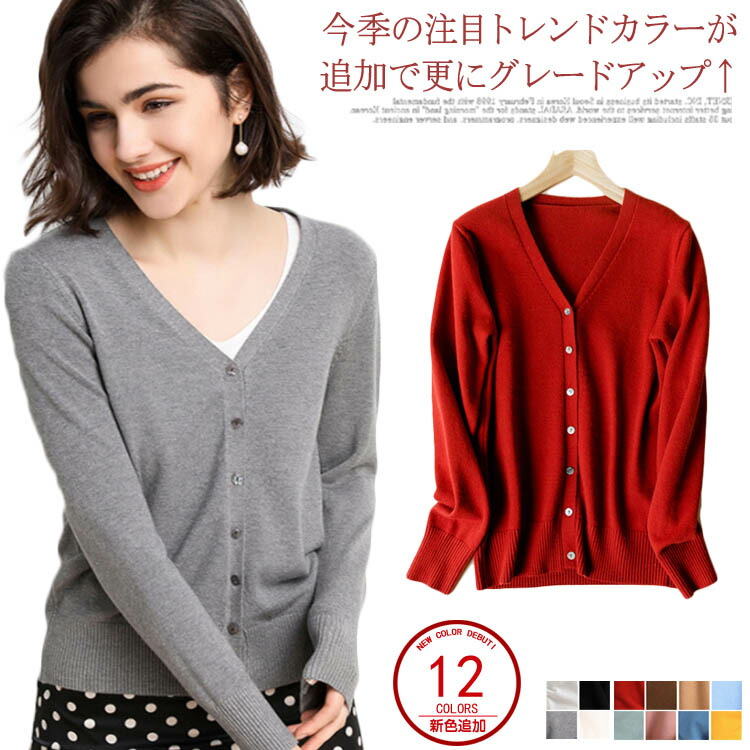 カーディガン レディース ニットカーディガン オフィス シンプル 暖かい ニット セーター おしゃれ ニットトップス 長袖 前あき レッド グレー ホワイト ブラック 黒 クルーネック 大きいサイ 白