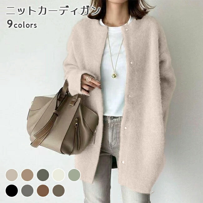 ニットカーディガン レディース カーディガン ヒップ丈 厚手ニット ソフト お洒落 アウター ゆったり ドロップショルダー 春秋 カーデ 体型カバー コーディガン ニット 暖かい 通勤 カジュ コート