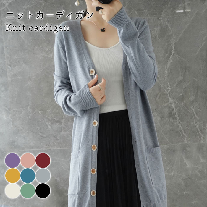 ニットカーディガン レディース カーディガン リブニット 長袖 ロングカーディガン ロング丈 ポケット付き 無地 薄手 ボタン付き 羽織 お洒落 カジュアル 秋新作 トップス