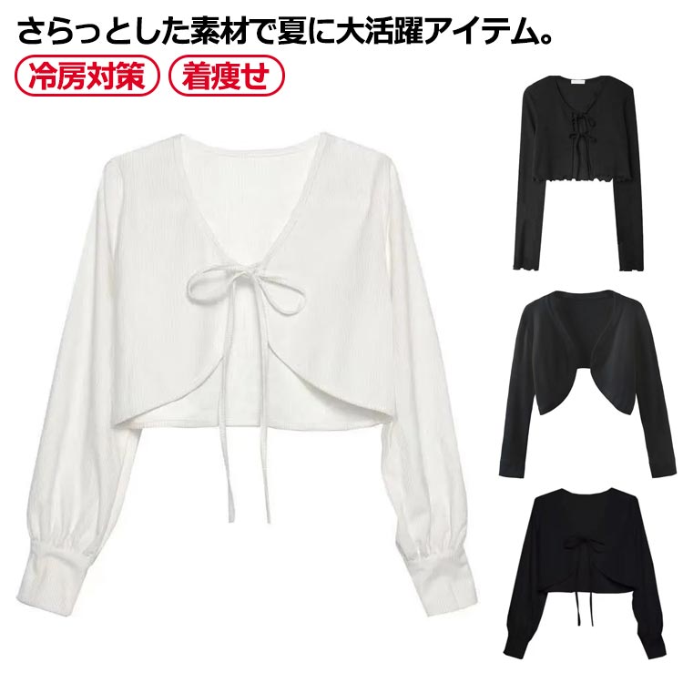ボレロ ショート丈 レディース 春 夏 カーディガン 長袖 トップス uvカット 冷房対策 Vネック 羽織り レイヤード 可愛い 着痩せ 女性らしい 通勤 日常 お洒落