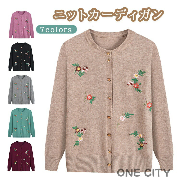 ニット カーディガン レディース 高齢者 セーター シニア ブラウス 婦人 ニットセーター 花柄 前開きボタン ママ 50-70代 女性 コート 羽織り おしゃれ 敬老の日 プレゼン アウター