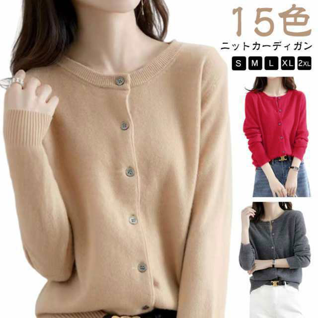 レッド ブラック シンプル オフィス カーディガン レディース ニット セーター ニットトップス 長袖 前あき おしゃれ グレー ホワイト 暖かい 白 クルーネック 大きいサイズ 秋 黒