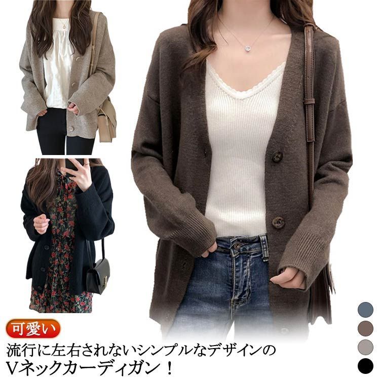 グレー 可愛い カーディガン きれいめ ス 大人 vネック カジュアル ドロップショルダー 無地 長袖 ニット アウター 黒 秋冬 オフィス レディース 羽織り セーター ニットカーディガン