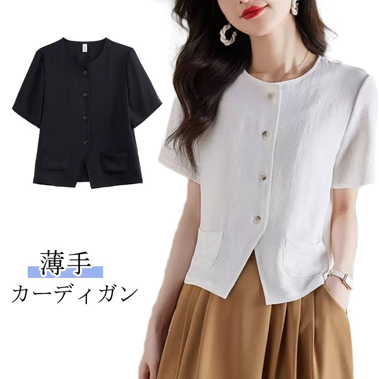半袖 カーディガン 夏 レディース 綿麻風 半袖ジャケット サマー カーディガン 羽織り 薄手