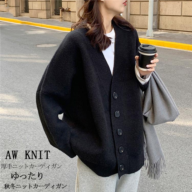 ニットカーディガン レディース 秋冬 ニット カーディガン ゆったり ニット羽織り トップス 長袖 ニットコート 厚手 ドロップショルダー ボタン Vネック シンプル カジュアル 大きいサイズ 大人