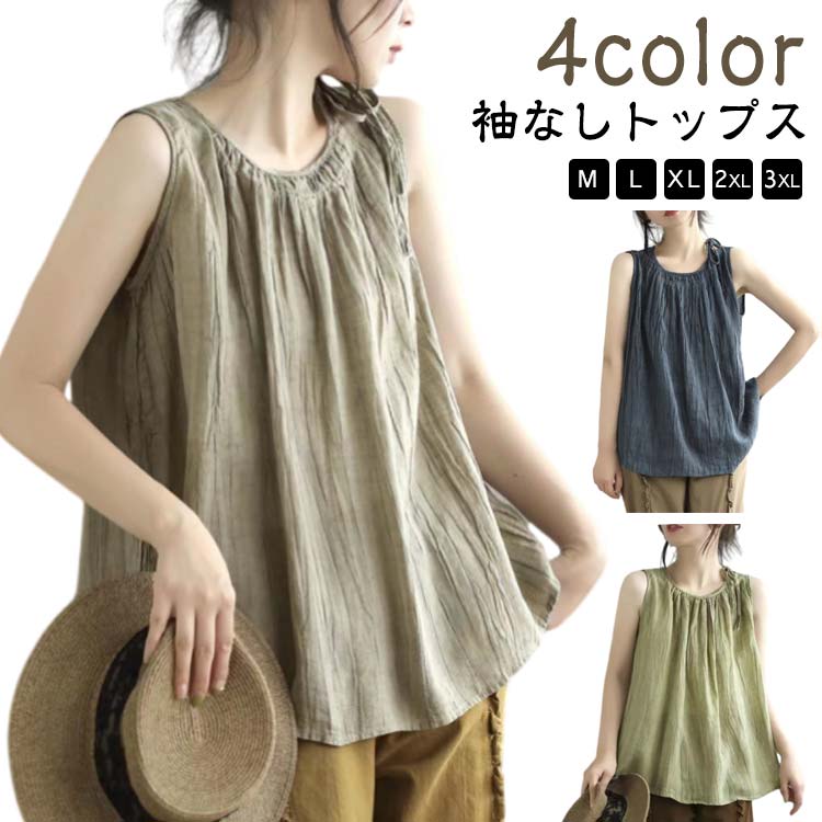 ブラウス ノースリーブ レディース タンクトップ シャツ Tシャツ 夏 春秋 綿 トップス 無袖 Aライン カジュアル おしゃれ シンプル きれいめ 着回し リゾート 旅行 海 フェミニン 肌 ビーチ