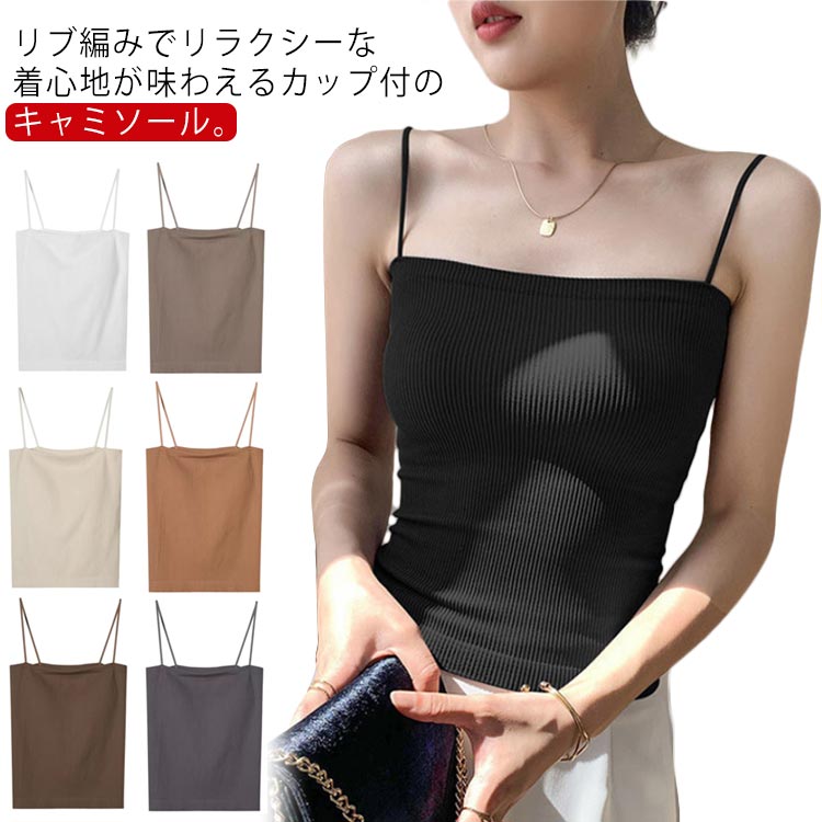 レディース インナー カップ付き タンクトップ キャミソール リブ編み キャミソールブラ ブラジャー 締め付けない ブラトップ