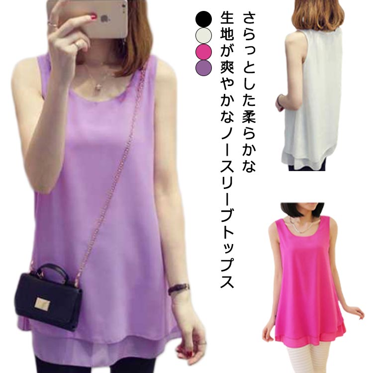 キャミソール タンクトップ ブラウス トップス シフォンタンクトップ シースルー ノースリーブ シャツ ロング丈 かわいい シフォン 上品 きれいめ 夏 カジュアル カットソー 軽 インナー