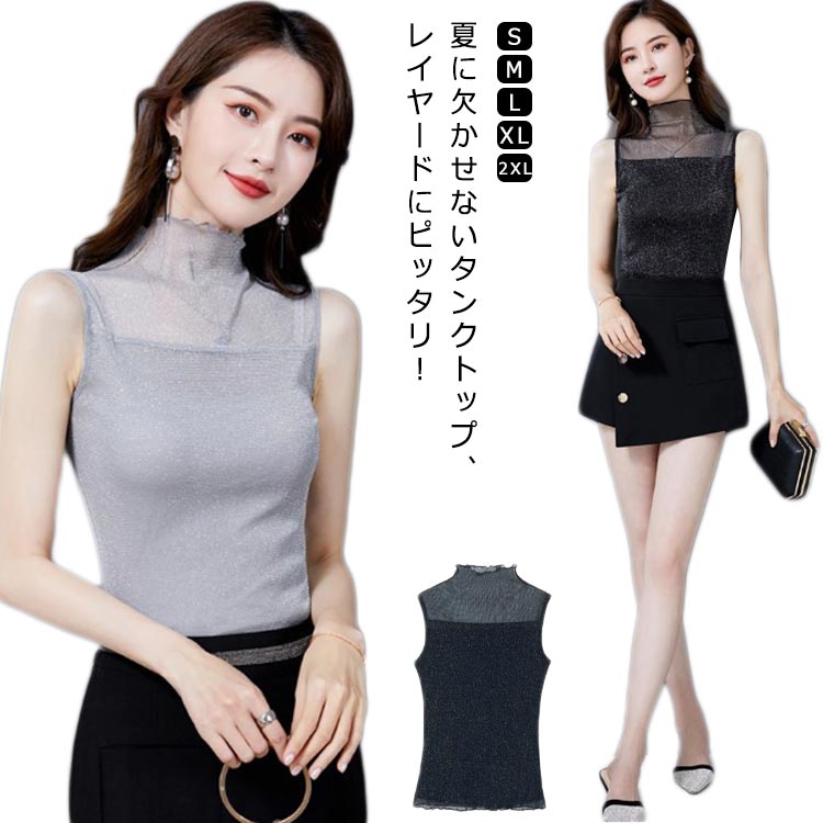 無地 トップス レディース サマー おしゃれ 涼しい ノースリーブ シアートップス タンクトップ 通勤 紫外線対策 透け感 肌見せ 薄手 きれいめ セクシー 春夏 重ね着 上品 インナー OL 伸縮性