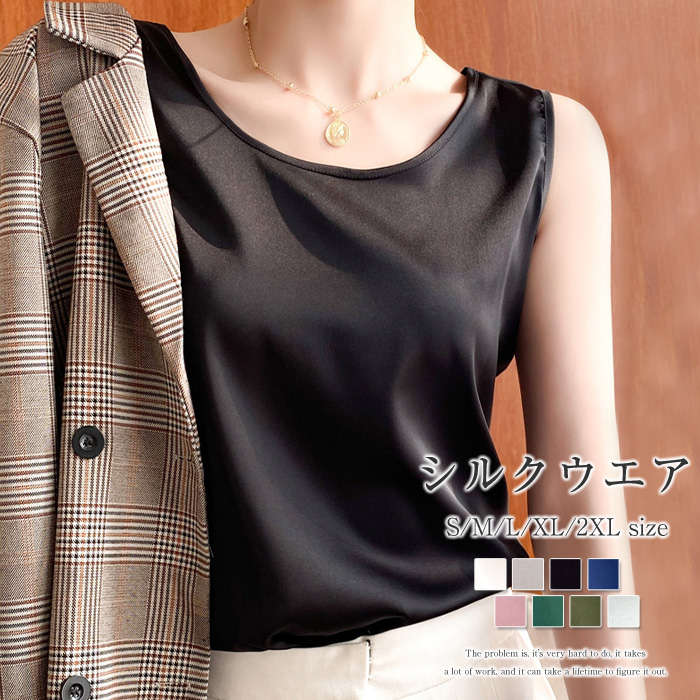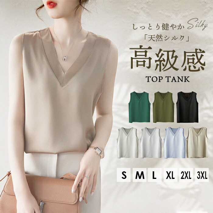 触れてみたくなる~ シルクタンクトップ 春 夏 秋 冬 オールシーズン ホワイト 白 グレー ブラック 黒 ネイビー ピンク グリーン カーキ シャンパン色 送料無料 ♪